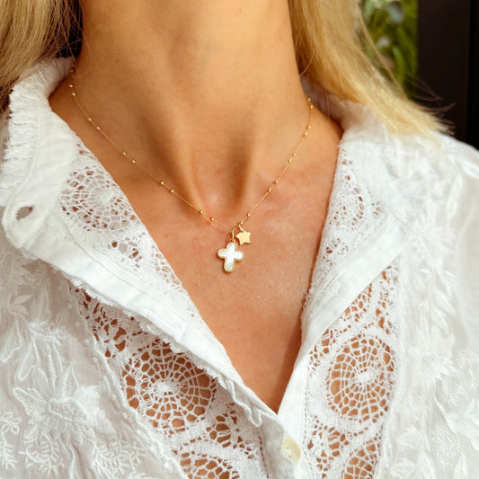 Plata maciza, latón bañado en oro y nácar para garantizar durabilidad y belleza.