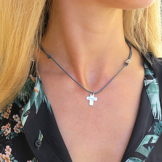 Collar Personalizable Colgante Cruz Calada redonda pequeña cordón