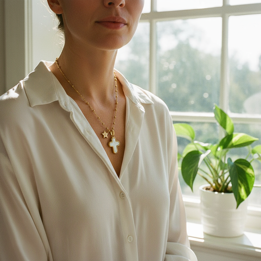 Plata maciza, latón bañado en oro y nácar para garantizar durabilidad y belleza.