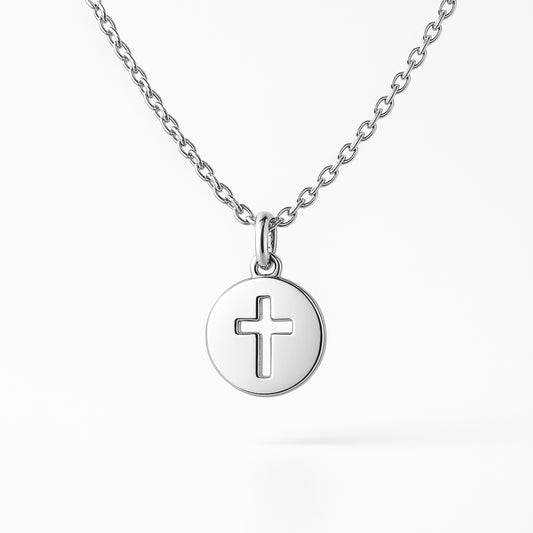 Collar Colgante Redondo Cruz Calada Personalizado cordón