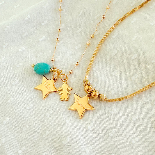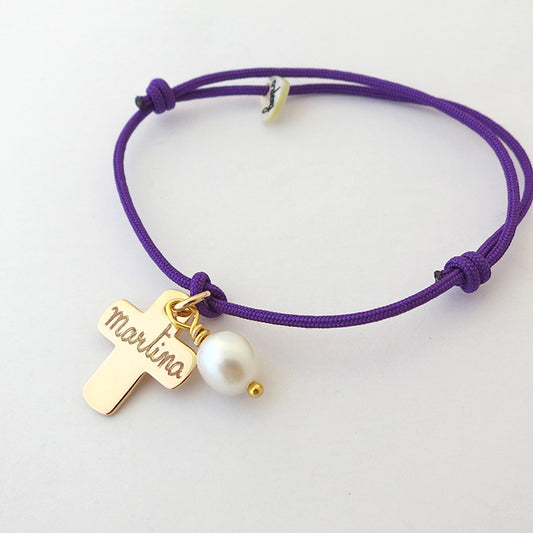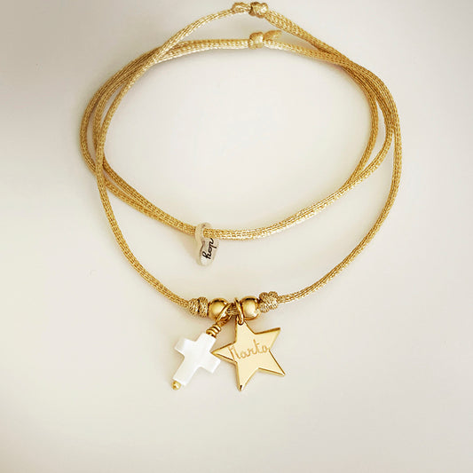 Collar Cruz Personalizado con cordón y medalla adicional en forma de niño, niña o estrella