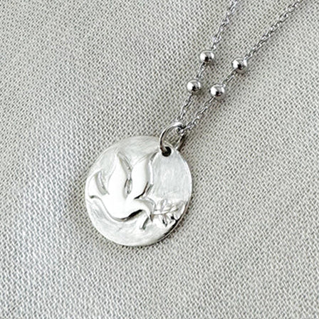 Personalized gold and mother-of-pearl Peace Dove Religious Pendant Necklace with chain