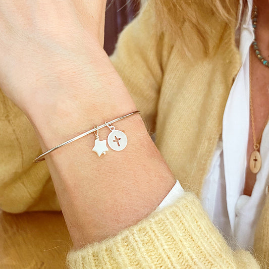 Pulsera Personalizado Colgante Cruz Calada redonda pequeña cordón
