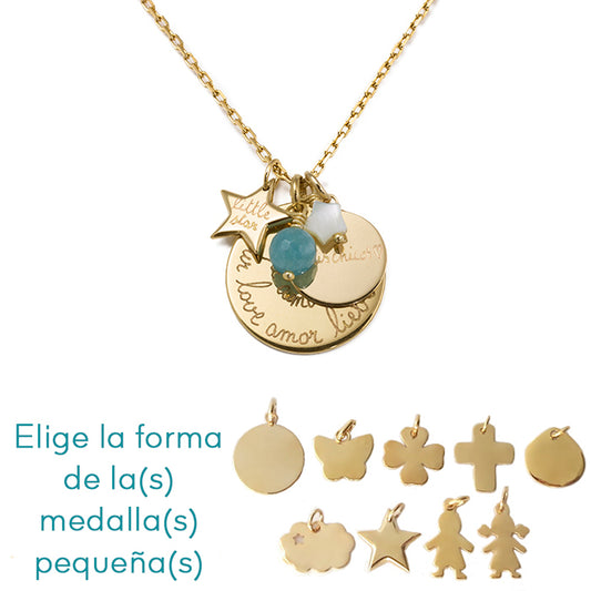 Collar Sidonie Redondo personalizado con cordón y Medallita adicional niño, niña, estrella