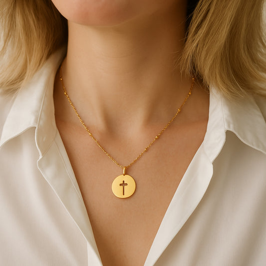 Collar Colgante Redondo Cruz Calada Personalizado cordón