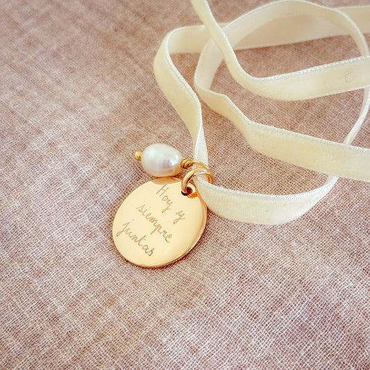 Medallas para el ramo de la novia, grabadas con frases emotivas, iniciales o fechas especiales.